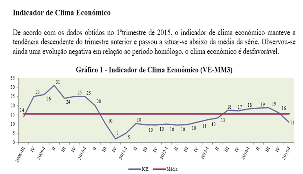 Os empresários angolanos continuam pessimistas quando ao futuro próximo da economia angolana como podemos observar no mais recente documento informativo sobre a conjuntura económica publicado pelo INE, referente ao primeiro trimestre de 2015.