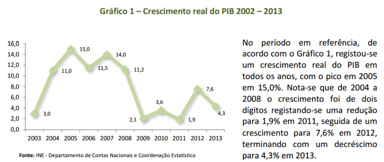 Tenho algumas reservas que o estado da economia nacional não evolua para uma recessão em termos reais (o FMI estima um crescimento real de 3,5%) sendo que em termos nominais, sabemos todos que o PIB de 2015 será significativamente menor do que o de 2014. Quanto à desaceleração, os números do INE (“Contas Anuais Definitivas 2013”) mostram que desde 2008 o nosso PIB real não apresenta uma taxa de crescimento de dois dígitos e cresceu abaixo de 5% entre 2009 e 2013 com excepção de 2012 (7,6%), ou seja, a desaceleração não é de agora e não é ligeira.