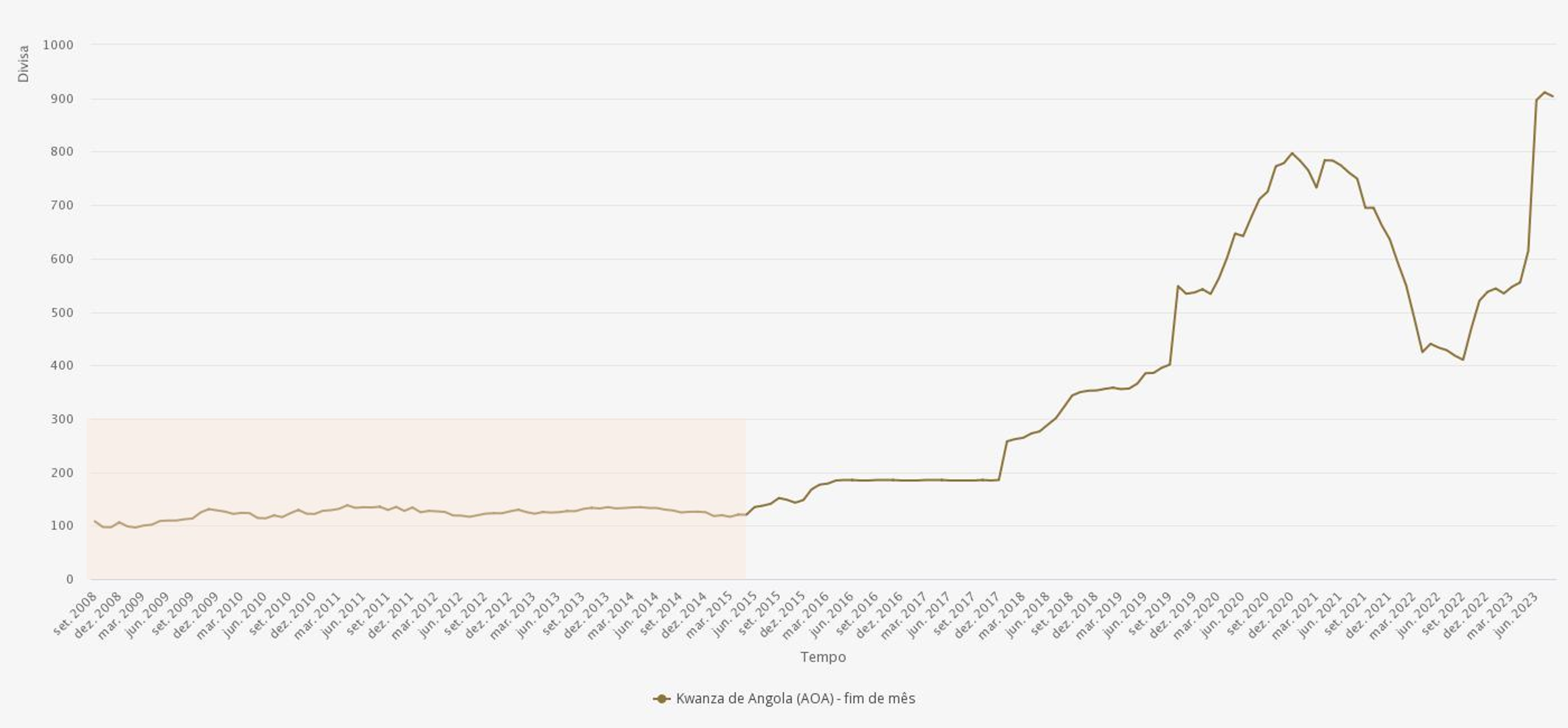 O que tem estado a fazer o Banco Nacional da Dinamarca é o que o Banco Nacional de Angola perdeu a capacidade de fazer por volta de 2014 quando iniciou uma defesa vigorosa da taxa de câmbio do Kwanza contra as moedas fortes e acabou forçado, já em 2015, a fazer um ajustamento mais pronunciado ao preço de transação da nossa moeda.