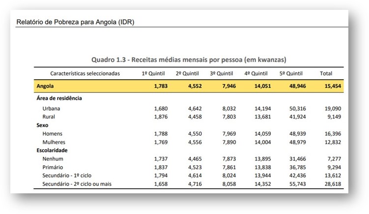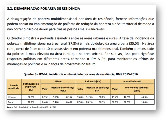 Se olharmos para a abordagem multimensional da pobreza (que vai para além da lógica material) os números são ainda mais graves com quase 90% da população rural a viver em situação de pobreza e estes números são também do INE (“Relatório Índice de Pobreza Multidimensional de Angola” publicado em Julho de 2020).